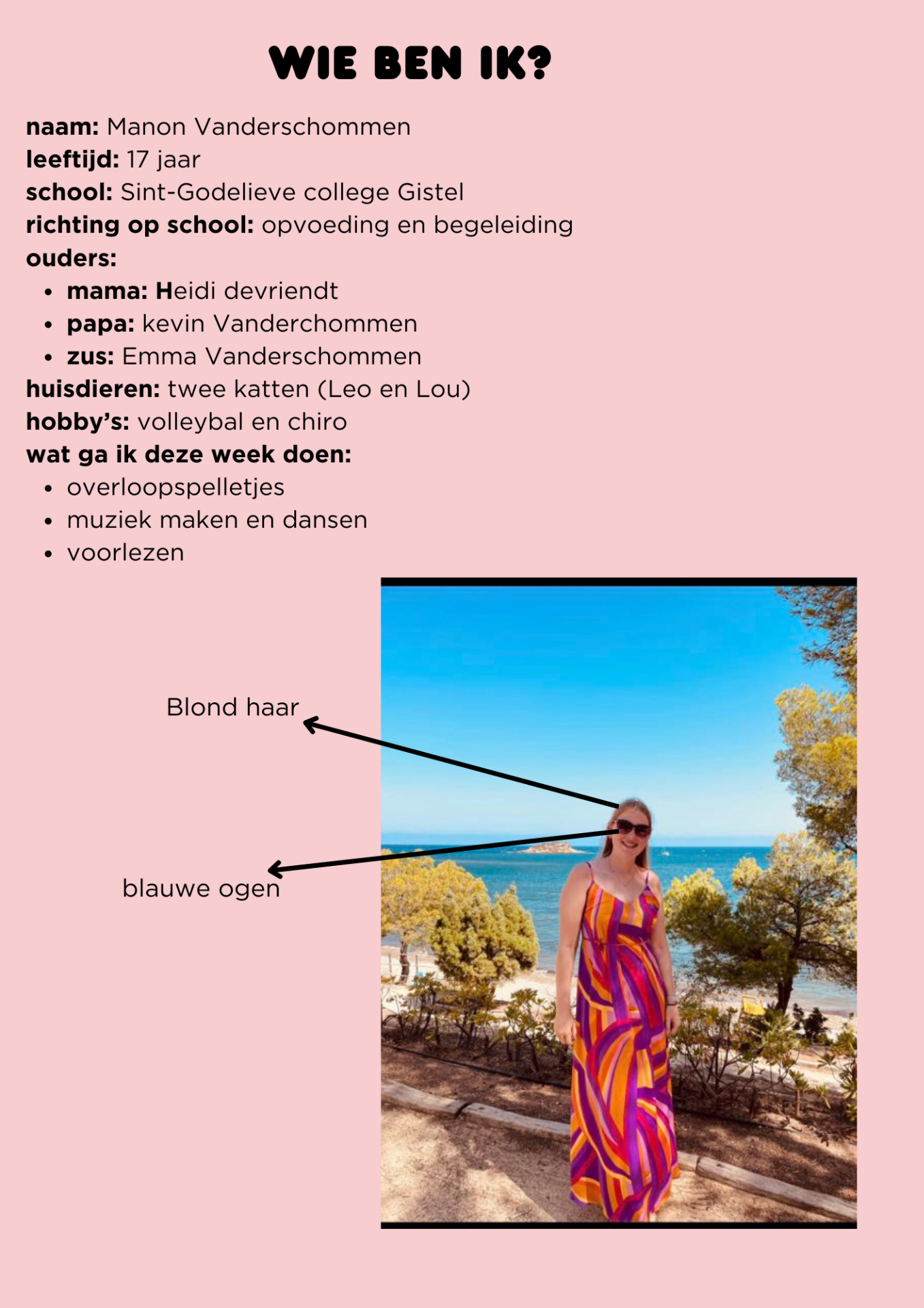 hier stel ik mezelf voor aan de ouders en aan de leerkrachten zodat ze mij beter leren kennen en zodat ze ook weten wat ik allemaal kom doen.